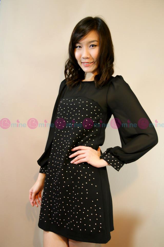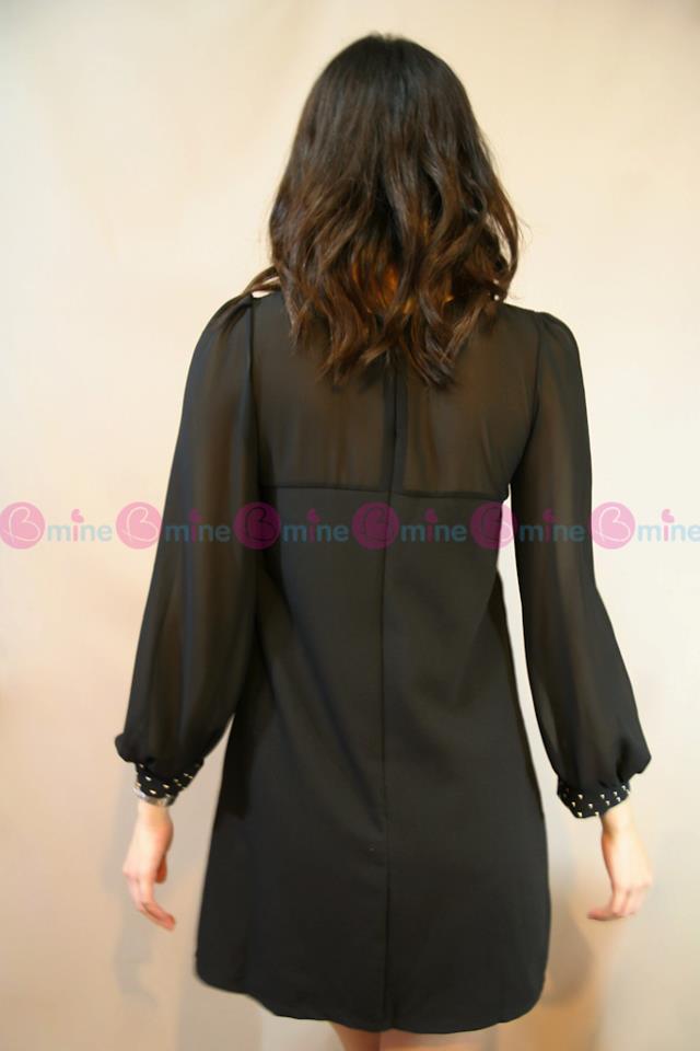 เดรสผ้าชีฟองสีดำ ปักหมุดสีทอง ซิปซ่อนด้านหลังค่ะ ช่วงบนเป็นผ้าชีฟองซีทรูแต่ไม่บางมาก