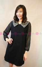 เดรสผ้าชีฟองสีดำ ปักหมุดสีทอง ซิปซ่อนด้านหลังค่ะ