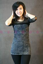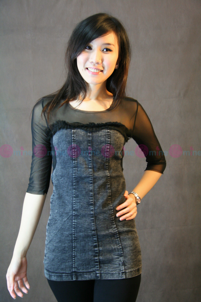 มินิเดรสผ้ายืดยีนส์ฟอกสีดำ แต่งด้วยผ้าซีทรูช่วงบน ขอบอกว่านิ่มมากๆๆค่ะ ใส่สบายสุดๆ แต่งซิปด้านหลังเพิ่มความเก๋ ขอบอกว่าห้ามพลาดเลยค่ะ