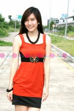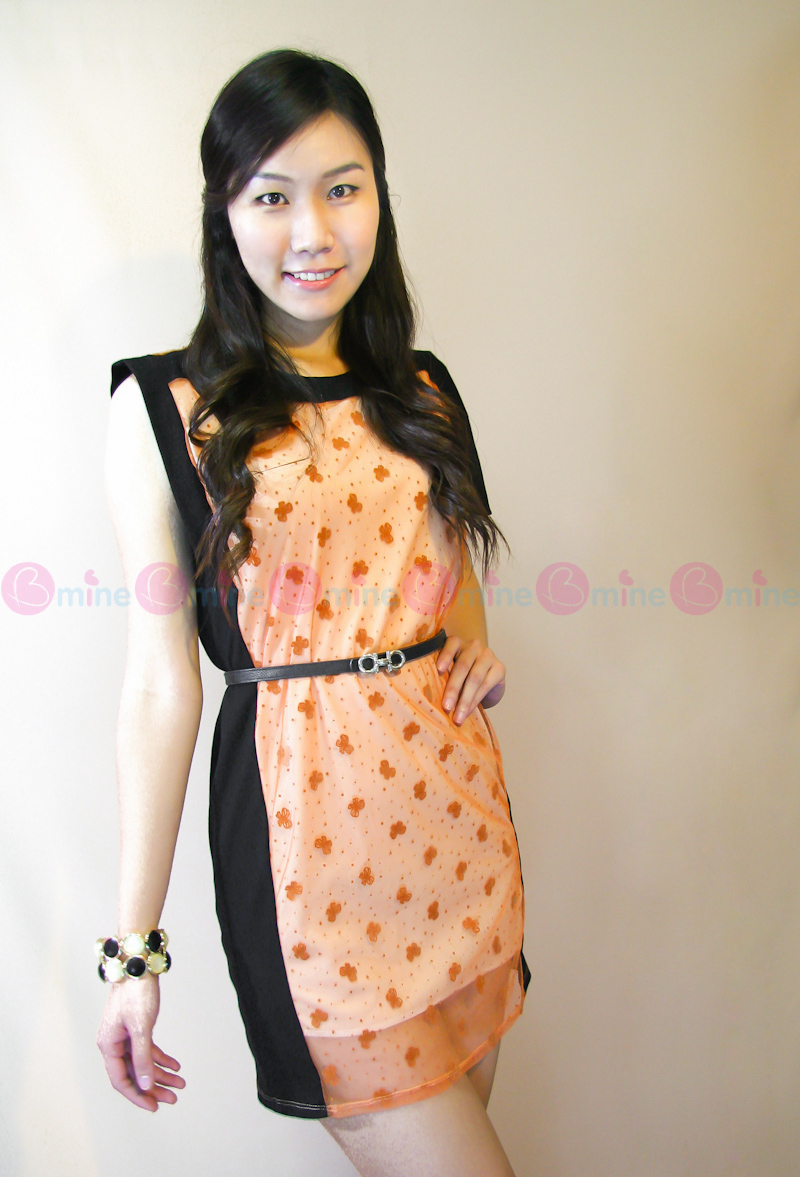 เดรสผ้าคอตตอนสีดำ แต่งผ้าตาข่ายสีส้มลายโบว์เล็กๆ