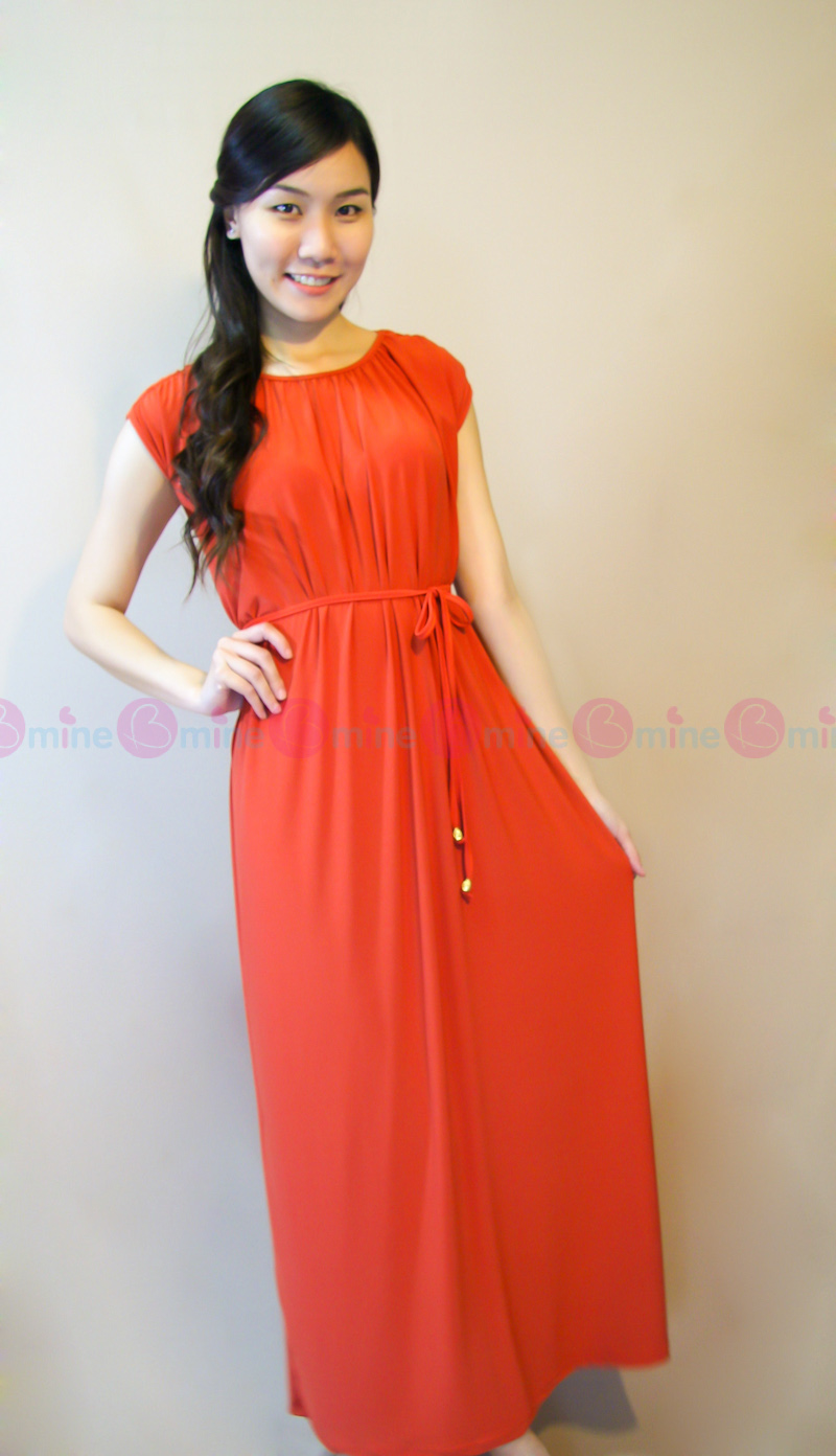 Maxi Dress ผ้าไหมสปัน ทิ้งตัว สีส้มสดใส