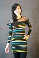 เดรสผ้ายืดแขนยาวลายทางสีสดใสตกแต่งระบายและผ้าซีทรูช่วงไหล่ ได้ลุคเกาหลีนิดๆ จะใส่เป็นเดรส หรือ ใส่กับเลคกิ้งก็น่ารักค่ะ แบบนี้เนื้อผ้าดีมากๆค่ะ