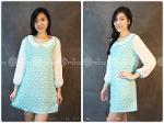 เดรสทรงปล่อยผ้าไนลอนสีเขียวอ่อนลาย Polka Dot สีขาว แต่งแขนด้วยผ้าชีฟอง และปกคอบัว น่ารัก ใส่สบาย ไม่ร้อนค่ะ