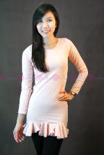 เดรสผ้ายืดแขนยาวสีชมพูคอกลม แต่งระบายชายกระโปรง น่ารักมากๆค่ะ ใส่เป็นเดรส หรือ ใส่กับเลคกิ้งก็ได้ลุคเกาหลีนิดๆนะคะ