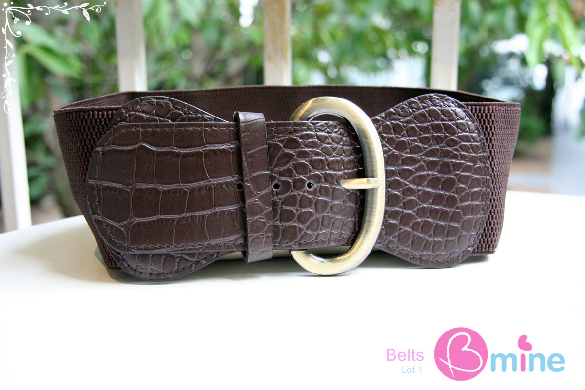 เข็มขัดยางยืดสีน้ำตาลเข้ม หัวเข็มขัดเหล็กสีทอง เข้าได้ทั้งเดรสและกางเกงค่ะ